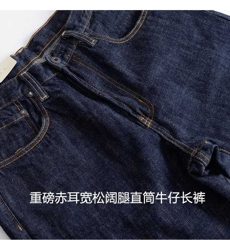 16oz Heavyweight Red Selvedge Denim Jeans for Men High Quality Loose Straight Pants One Wash Autumn Casual 100% Cotton Y2K