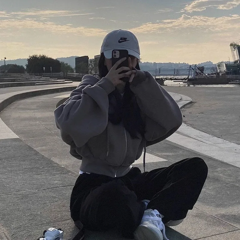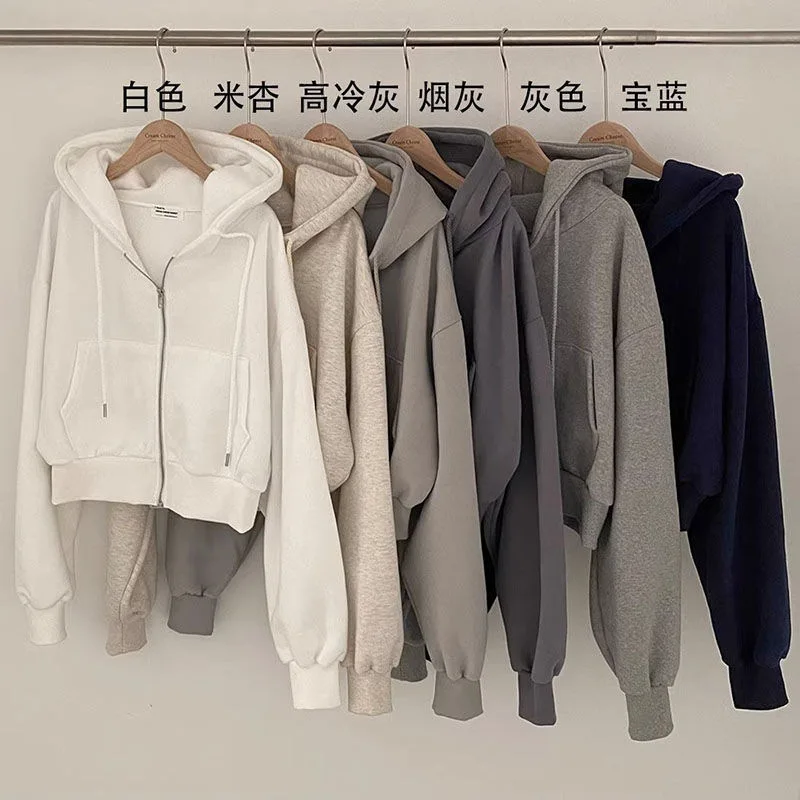 Casual Hood Sweatshirt Women Y2K Zip Up Hoodies Solid Harajuku Long Sleeve Shirt Crop Tops Female Loose Jackets Coat